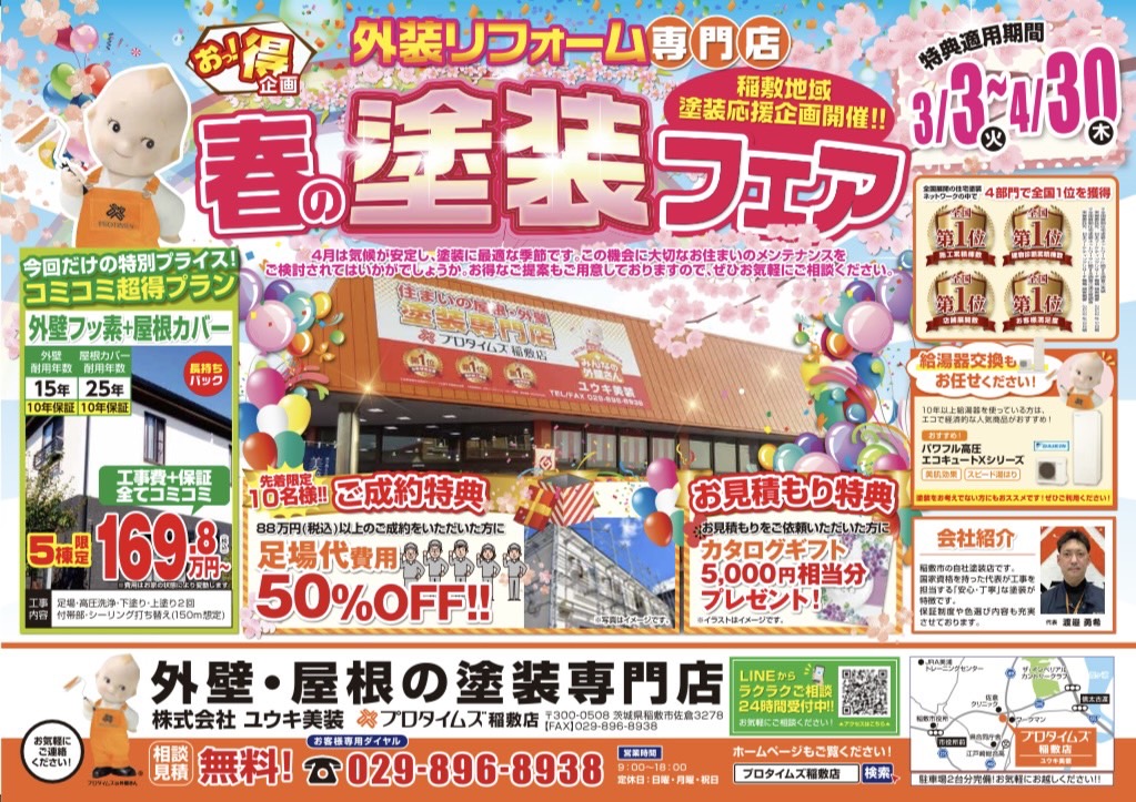 ・現在は、全国組織の塗装ネットワーク「プロタイムズ」の加盟店としてプロタイムズ稲敷店を運営。