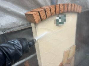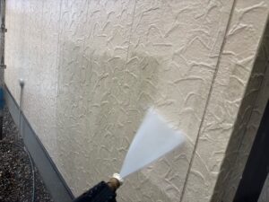 洗浄をし、汚れを落とすことで塗料の密着性を高めます。