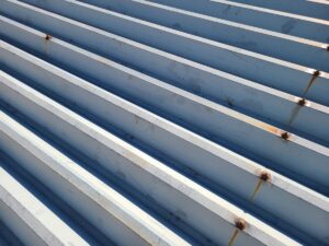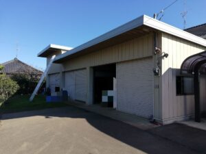 折半屋根の倉庫で、色褪せや錆が気になりますね。