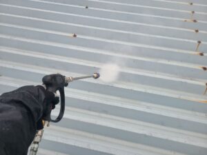 高圧洗浄により、折半屋根の凹部分も