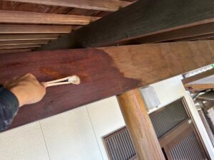 玄関前の木部も塗装させていただきました↓