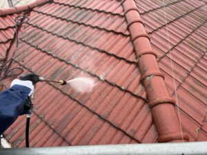屋根の高圧洗浄を行っています。↓