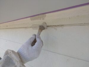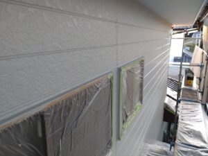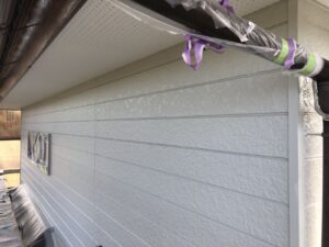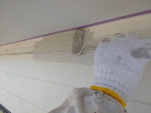 外壁の下塗り塗装をしています。↓