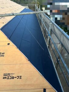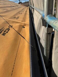 既存の屋根の上にまずはルーフィング(防水シート)を入れます。