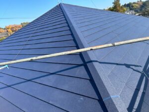 軒先板金取付、ガルテクト取付、棟板金取付と進んでいきます。