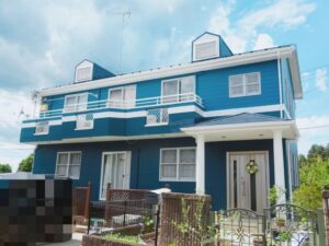 メインをブルー系にし、付帯部などにホワイトを塗装することで、可愛らしいお城みたいなお家になります。