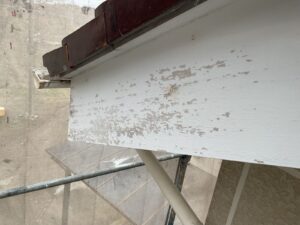 破風板と雨樋の下地調整しっかりとし、塗装を行いました。