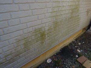 外壁には長年溜まった汚れ、コケなどがあります。