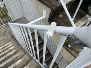 手すりの部分には、下塗りをする前にサビ止めもしっかりと行いました。