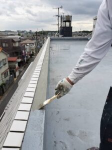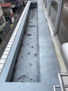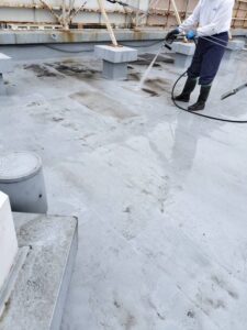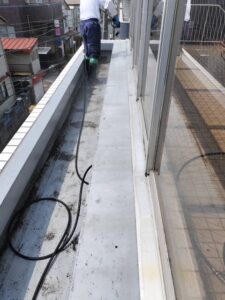 施工前の写真です。屋上部分も、全体的に高圧洗浄をしていきます。