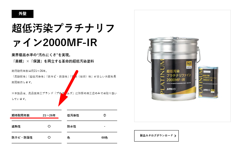 ▼ 塗料メーカーのページに記載された耐用年数の例
