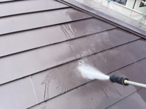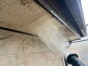 足場の組立も終わり、外壁・屋根・付帯部等の高圧洗浄の作業へと取り掛かりました!