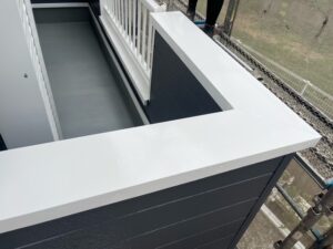 外壁が濃いお色のため、付帯部の白いお色がとても目立ちますね♪