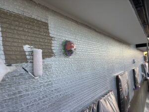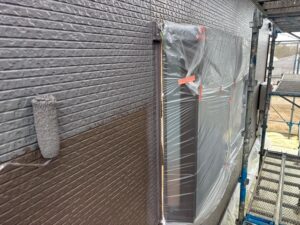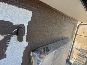 シーリング作業を行い、外壁は下塗り・中塗り・上塗りと3回塗りを行いました。