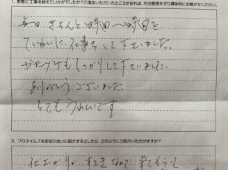 毎日きちんと時間~時間をていねいに仕事をして下さいました。 かたづけもしっかりして下さいました。 ありがとうございました。 とてもうれしかったです。