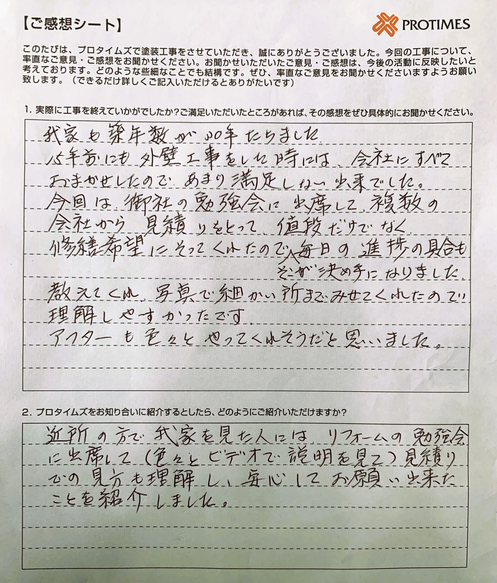見積りでの見方も理解し、安心してお願い出来たことを紹介しました。